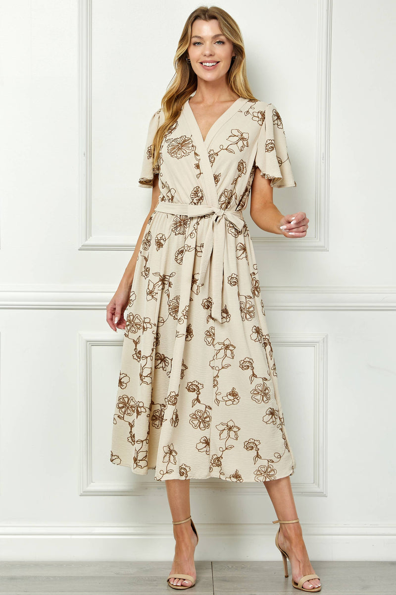 Boho Bloom Ruffle Hem Midi Dress