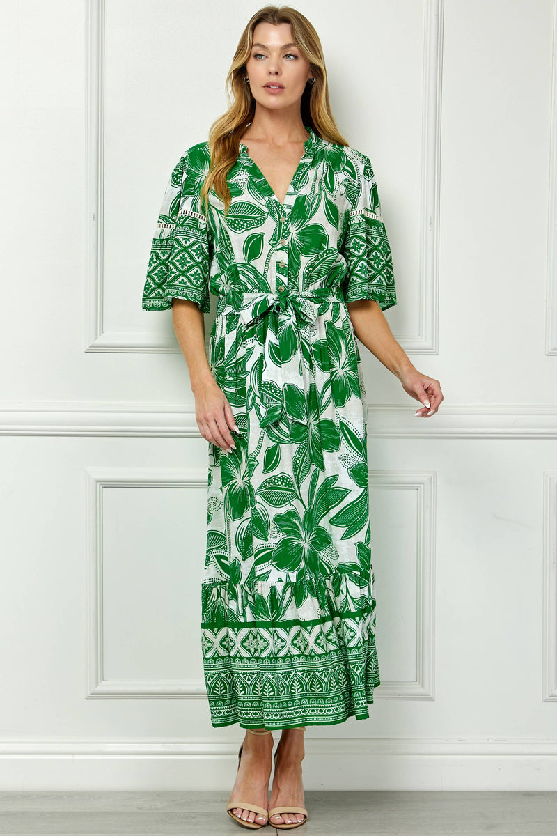 Boho Bloom Ruffle Hem Midi Dress