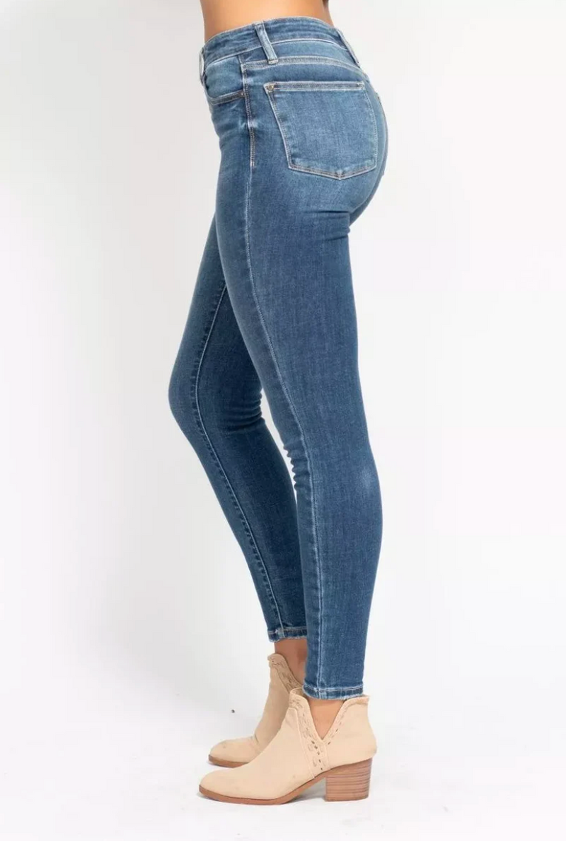 High Rise Button Fly Skinny Jeans