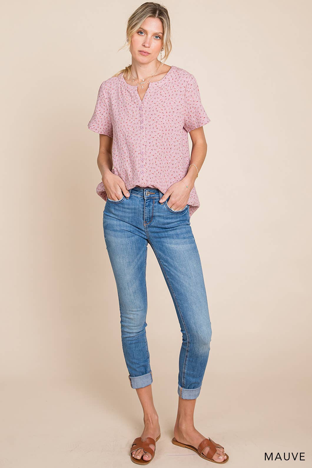 Elevate your wardrobe with this Floral Print Gauze Shirt, featuring a lightweight, breathable fabric perfect for layering or warmer days. The delicate floral pattern adds a chic, feminine touch, while the soft gauze texture ensures comfort and effortless style. Versatile and flattering, this shirt pairs seamlessly with your favorite jeans or skirts for a polished, trendy look.