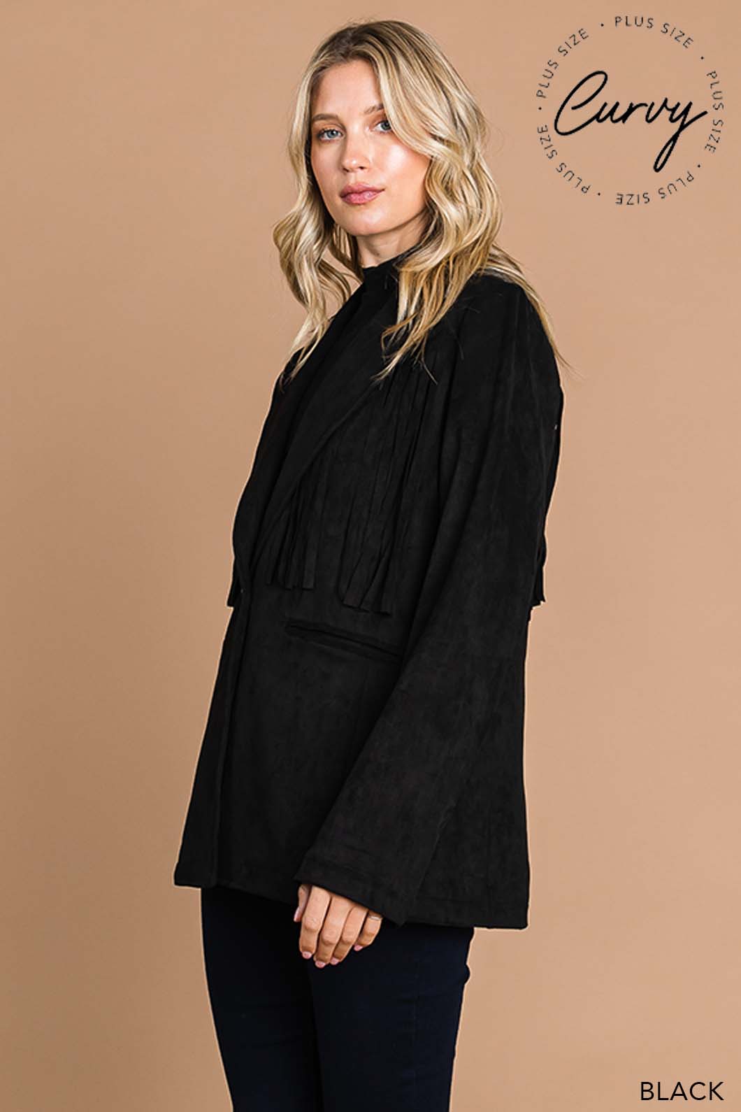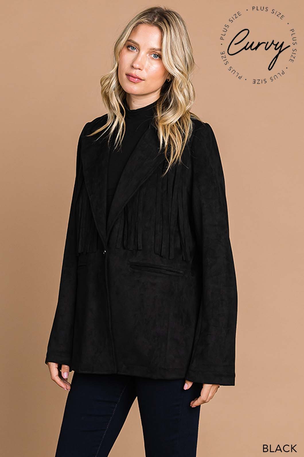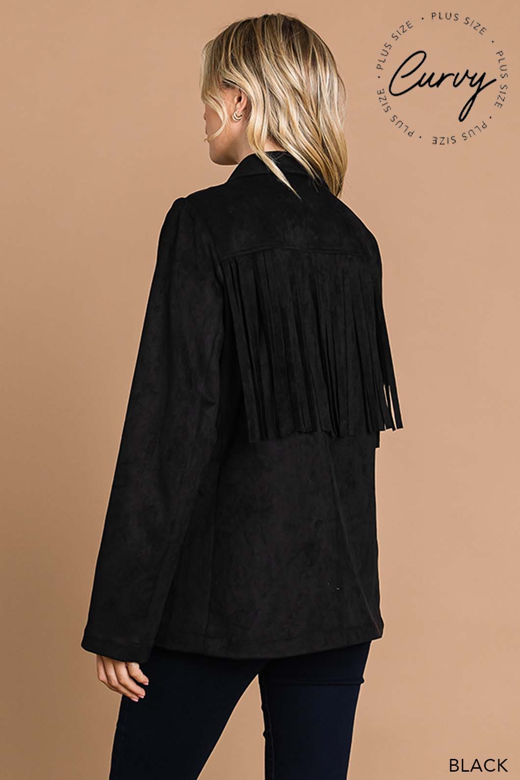 This Faux Suede Fringe Jacket delivers a chic blend of western-inspired style and modern flair. Crafted from soft faux suede, it offers a comfortable fit with eye-catching fringe details that add movement and texture. Perfect for layering, this jacket elevates any outfit with a touch of effortless cool.
