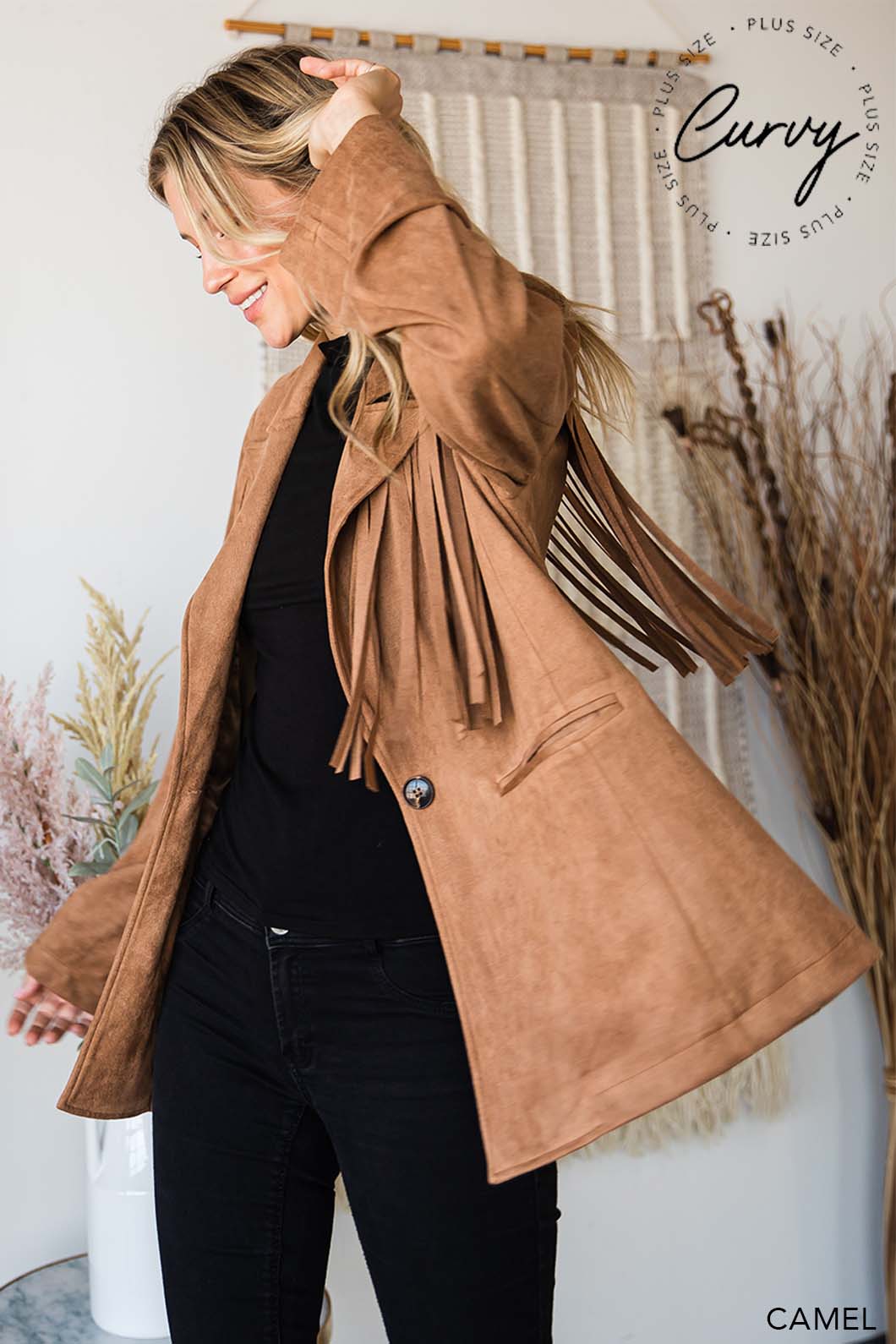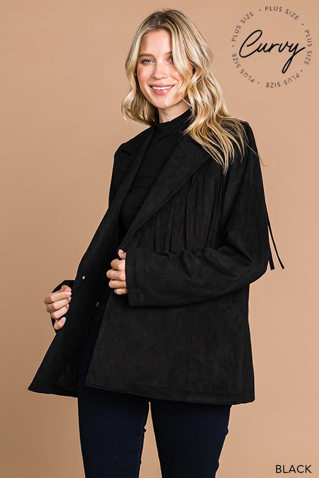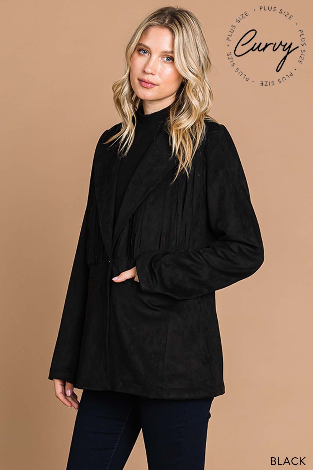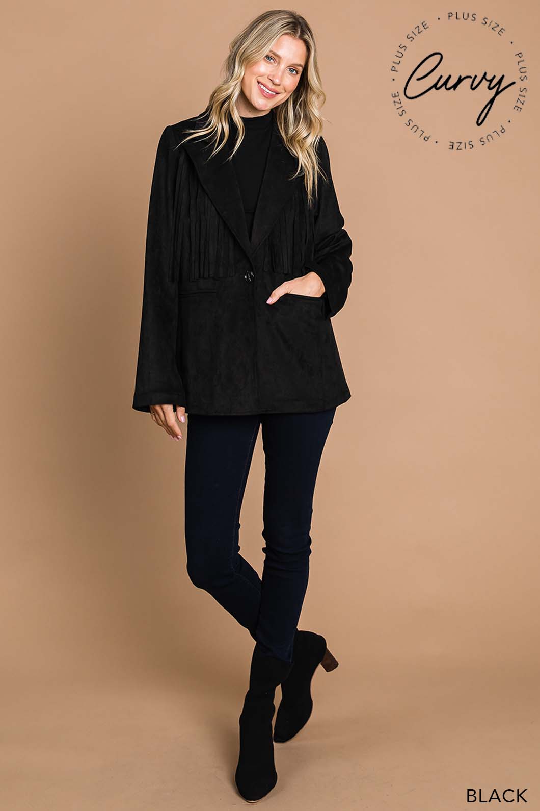 This Faux Suede Fringe Jacket delivers a chic blend of western-inspired style and modern flair. Crafted from soft faux suede, it offers a comfortable fit with eye-catching fringe details that add movement and texture. Perfect for layering, this jacket elevates any outfit with a touch of effortless cool.